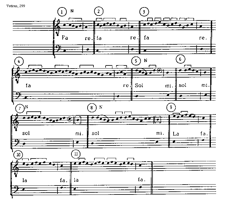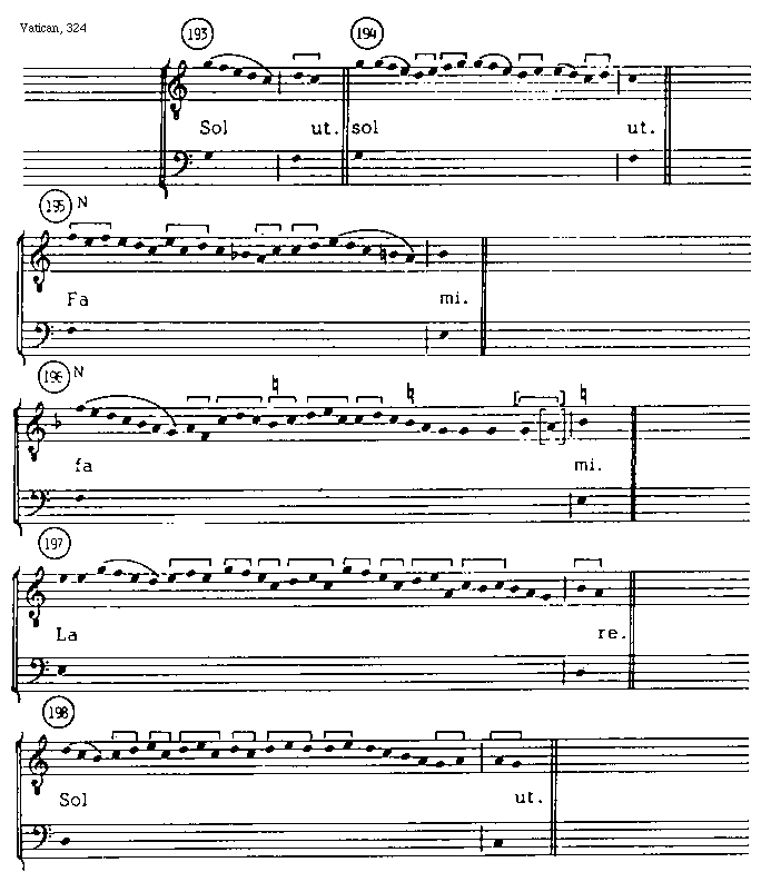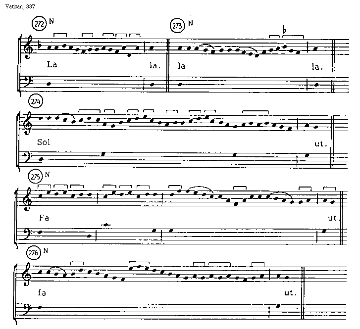 [Vatican, 325; text: La ut. Sol mi. Fa re. La ut.] [ARSORG 23GF]