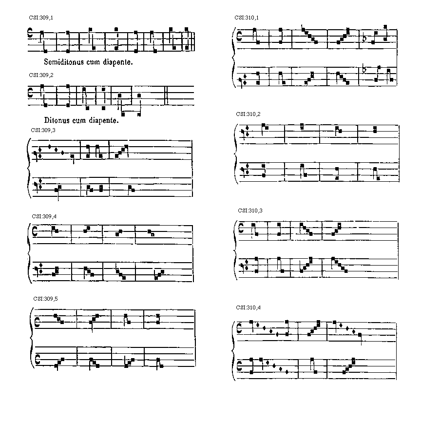 Consonantiarum alie perfecte, alie imperfecte, alie medie. Perfecte sunt, ut unisonus et diapason. Imperfecte sunt ditonus et semiditonus, que sunt [312] bone veniendo a diapente in diapente, vel a diapente ad unisonum, et e converso, et tonus cum diapente, que est bona ante diapason.