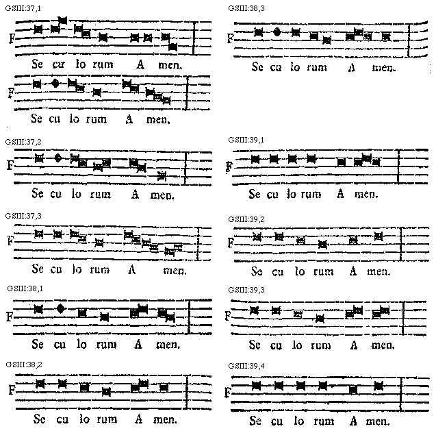 [GSIII:29; a. b. e. D. Responsoria Secundo Tono. F. Responsoria Primo Tono. Primus Ordo. Secundus Ordo. Tertius Ordo. Quartus Ordo. Seculorum Amen. Secundus Tonus. Linea Transversalis.] [SALSCI 04GF]