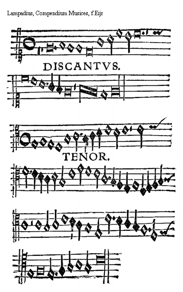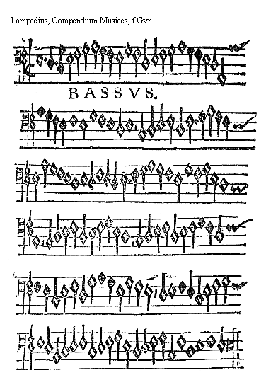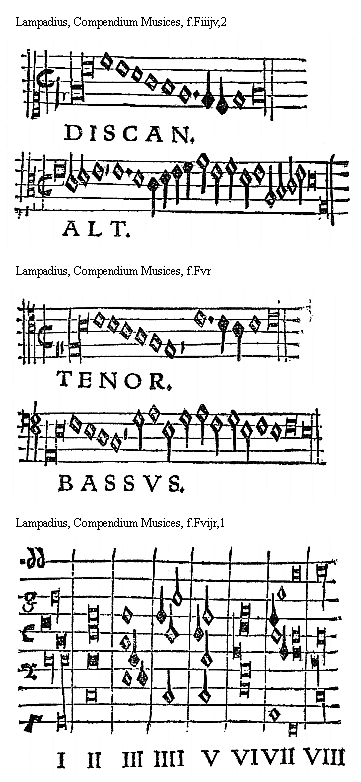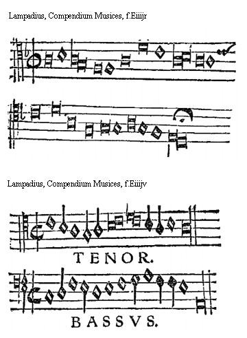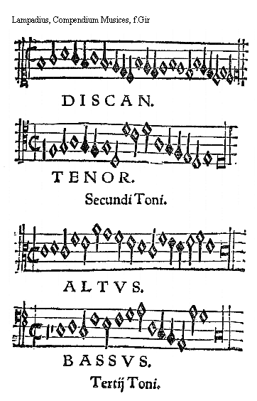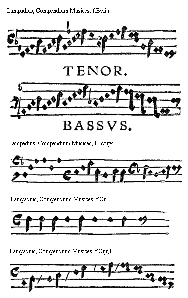 [Lampadius, Compendium Musices, f.Fiiijv,1; text: 4, 1, TENOR. BASSVS.] [LAMCOM 34GF]
