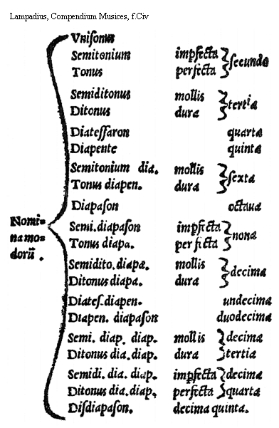 Quomodo reliquae ex dictis componuntur? ab unisono componitur diapason et disdiapason, quae omnes perfectae sunt. A quinta componitur diapente diapason, et diapente disdiapason, quae etiam perfectae sunt. A tertia construuntur ditonus diapason, et ditonus disdiapason. A sexta autem conflantur tonus diapente [f.Fiv] diapason, et tonus diapente disdiapason, quae omnes imperfectam resonantiam praebent.