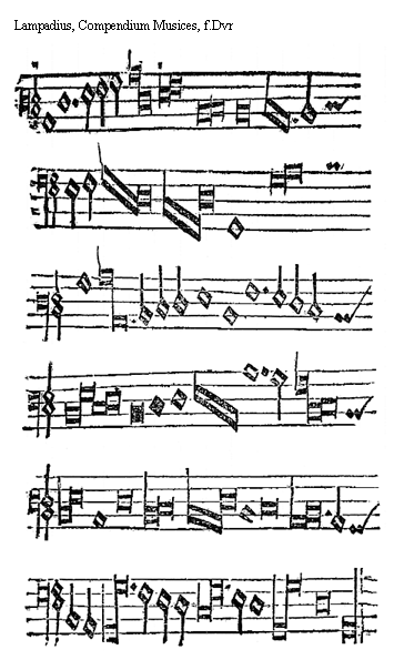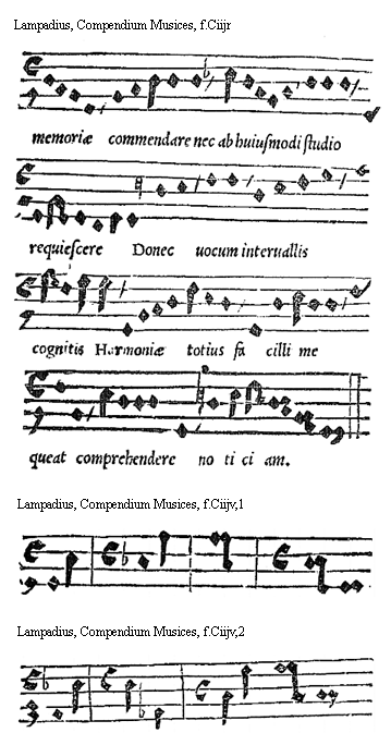 [Lampadius, Compendium Musices, f.Bvv; text: Amice quomodo huc intrasti. re, la] [LAMCOM 03GF]