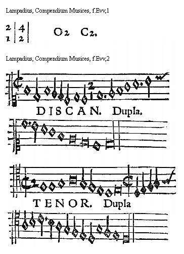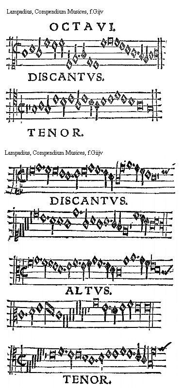 [Lampadius, Compendium Musices, f.Fiiijv,2; text: DISCANTVS. ALTVS.] [LAMCOM 35GF]