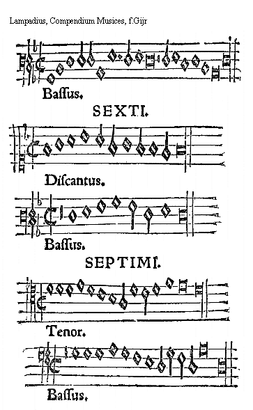 [f.Gijr] [Lampadius, Compendium Musices, f.Gijr; text: Bassus. Discantus. Tenor. SEXTI. SEPTIMI.] [LAMCOM 39GF]