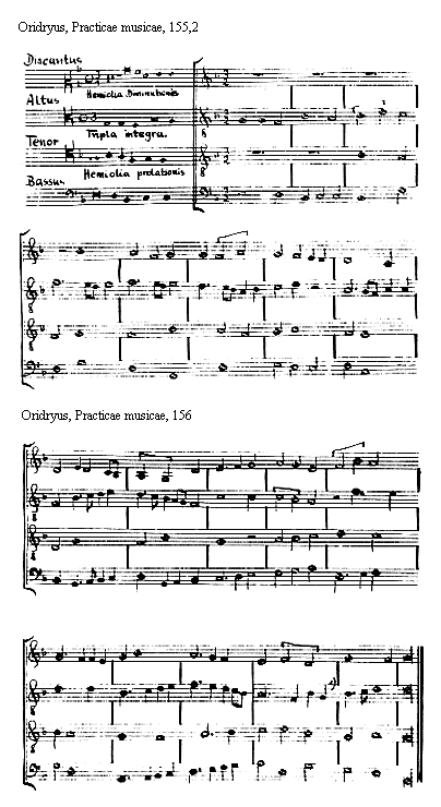 [Oridryus, Practicae musicae, 155,2; text: Discantus, Altus, Tenor, Bassus, Hemiolia Diminutiones, Tripla integra. Hemiolia prolationis] [ORIPRA 36GF]