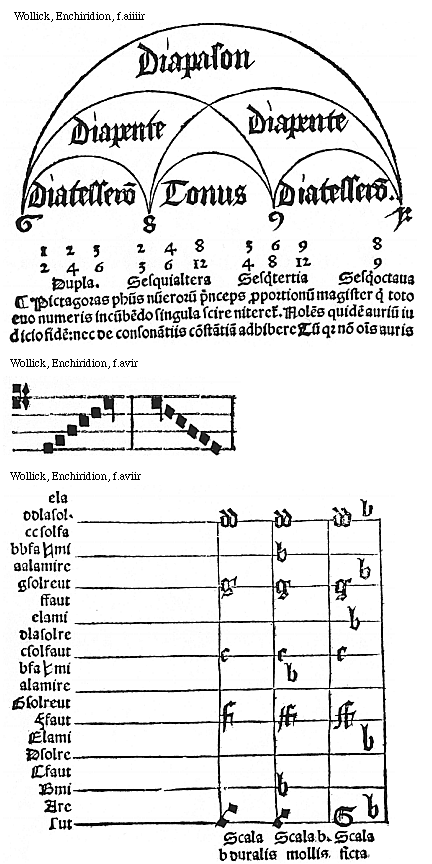 [Wollick, Enchiridion, f.aiiiir; text: Diapason, Diapente, Diatesseron, Tonus, Dupla, Sesquialtera, Sesquitertia, Sesquioctaua, 1, 2, 3, 4, 6, 8, 9, 12] [WOLENC1 02GF]