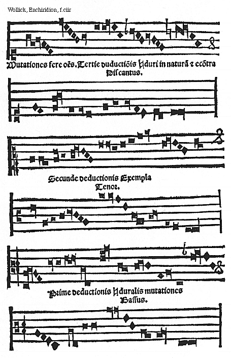 Source: Enchiridion musices Nicolai Wollici Barroducensis de gregoriana et figuratiua atque contrapuncto simplici percommode tractans, omnibus cantu oblectantibus perutile et necessarium (Impressum Parisii impensa honestissimorum virorum Iohannis Parui ad intersignium Leonis Argentei et Francisci Regnault ad intersignium diui Claudii commorantium. Anno virginei partus .1512. 14. kalendas Nouembris), ff. aviir–cviiir.
