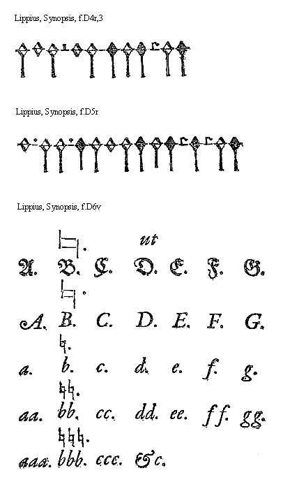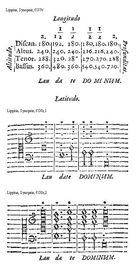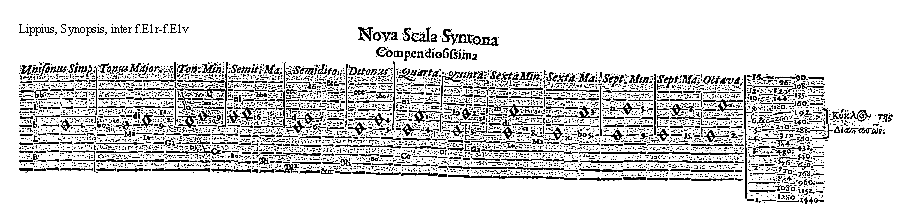 Source: Synopsis musicae novae omnino verae atque methodicae universae, in omnis sophiae praegustum [Parergos] inventae disputatae et propositae omnibus philomusis. à Magistro Joanne Lippio Argentoratensi Alsato Theologo (Argentorati: Paulus Ledertz, typis Carolus Kieffer, 1612), null.